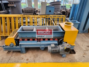 该带式给料机主要用于铸造车间新砂、型砂和经过处理的旧砂等物料的给料。对于块度大,夹有铁质杂块以及琢磨性高的物料不宜使用。